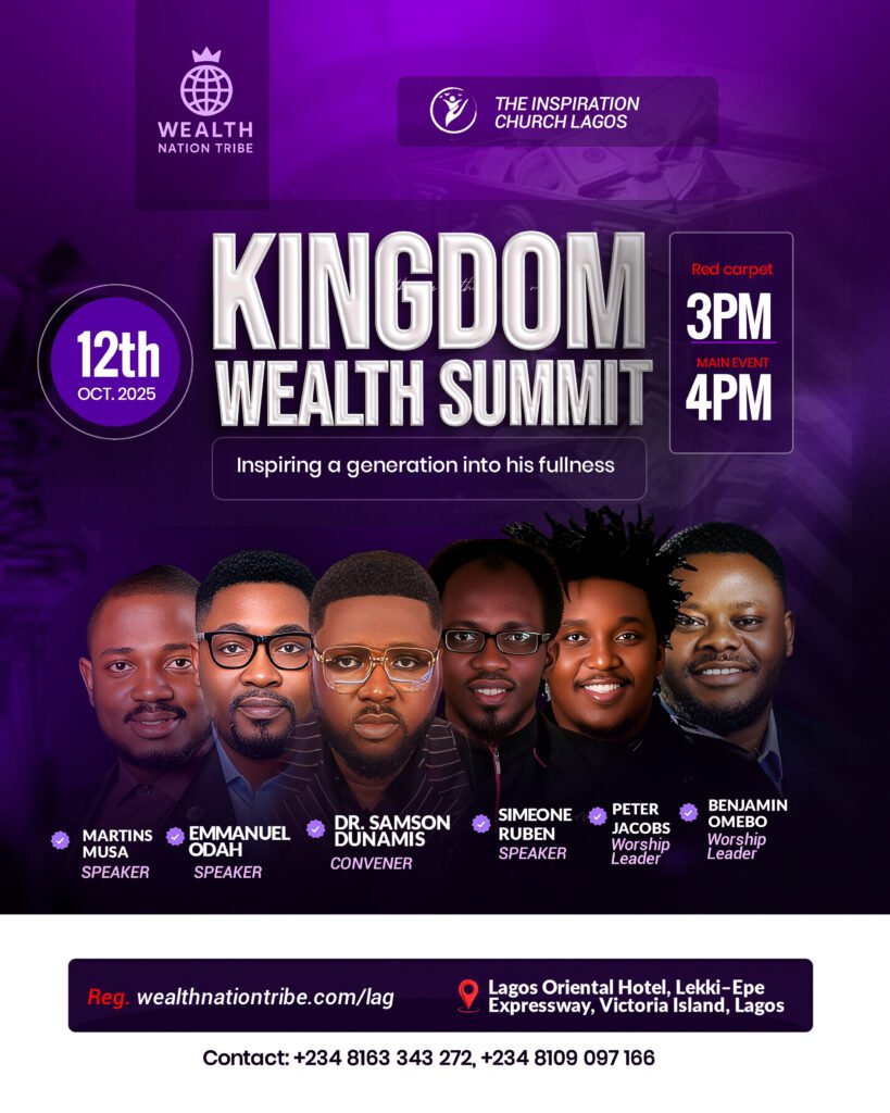 Get ready to step into your full inheritance at the Kingdom Wealth Summit, happening tomorrow, October 12, 2025, at the Lagos Oriental Hotel.